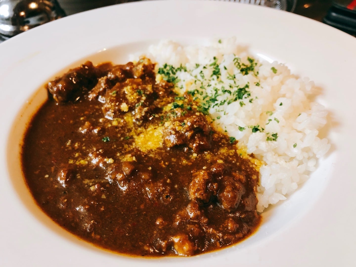 粗挽き牛ひき肉と和牛すじ肉が入ったスパイシーでコクのある、ただ辛いだけじゃない旨辛なとってもくせになるカレーです。白飯でもよし、写真のようにターメリックライスにしてちょっと変化付けるもよし♪